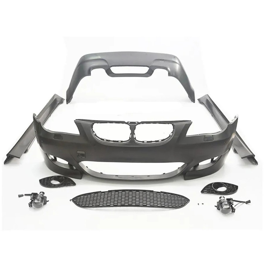 Seti hii ya mwili kamili ya BMW E60 5 Series (2004-2009) inajumuisha kila kitu unachohitaji kwa mabadiliko kamili: bumpers za mbele na za nyuma, sketi za upande, vidokezo vya kutolea nje, na grille ya mbele. Seti hii imeundwa ili kuboresha mwonekano na utendakazi wa BMW E60 yako, na kuipa sura ya ukali na maridadi zaidi. Sehemu hizi zimetengenezwa kwa plastiki ya PP ya hali ya juu, hutoa nguvu, uimara na uwezo wa kustahimili kuvaa, huku zikidumisha ubora ambao wamiliki wa BMW wanatarajia.